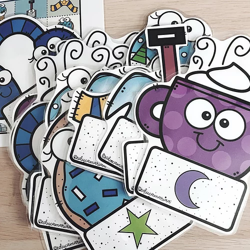 - Pack de muñecos invierno con lenguaje no convencional (sol, luna, estrellita) con los colores de los boomwhackers.