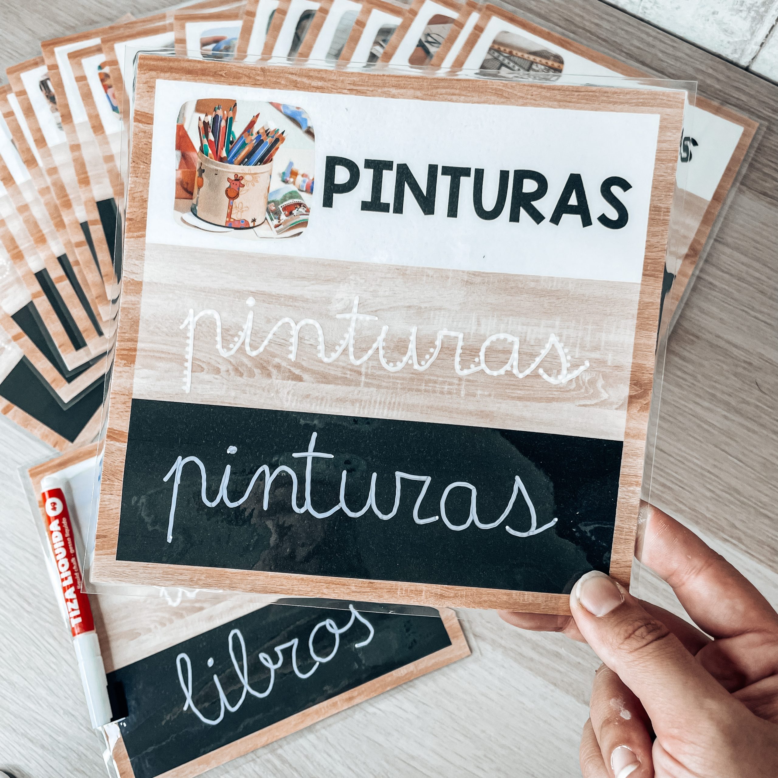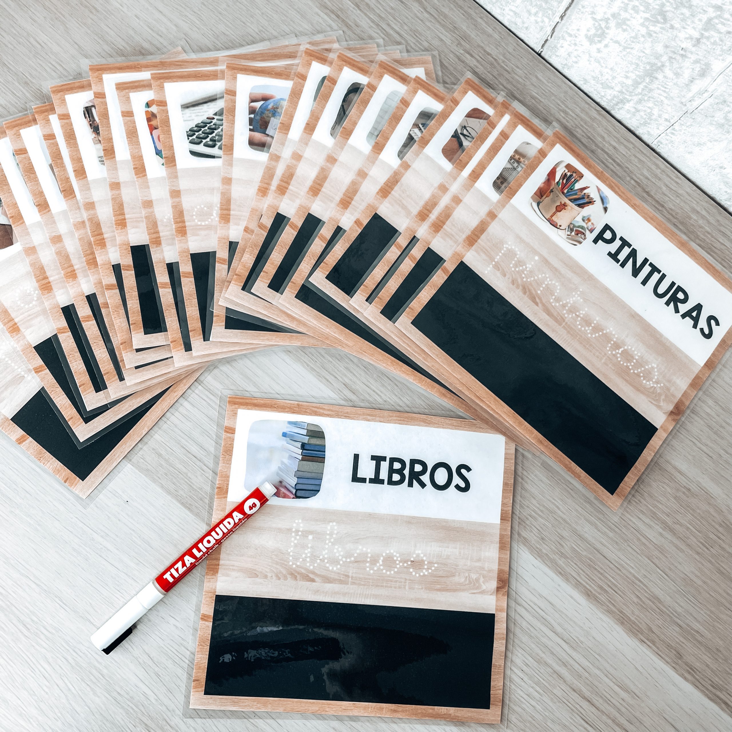 + Necesario rotulador de tiza líquida blanco para poder escribir sobre el negro.